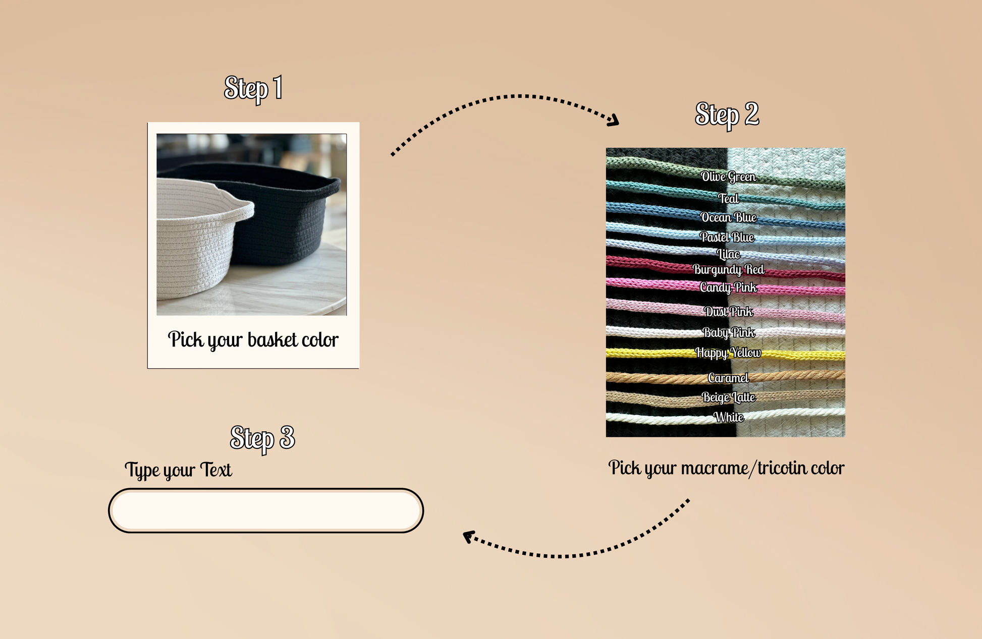 • Personalized with a macramé cotton rope or cotton braided tricotin