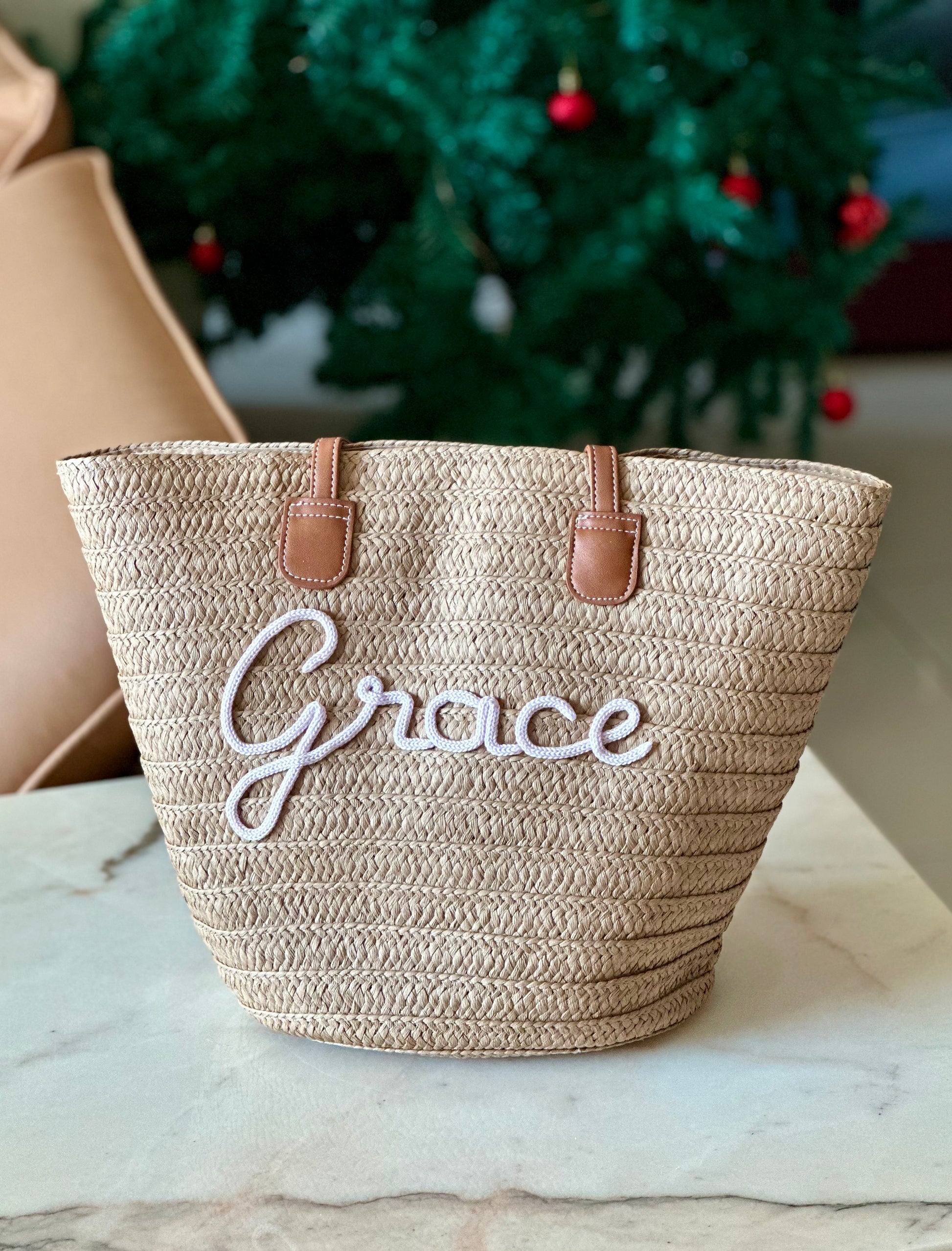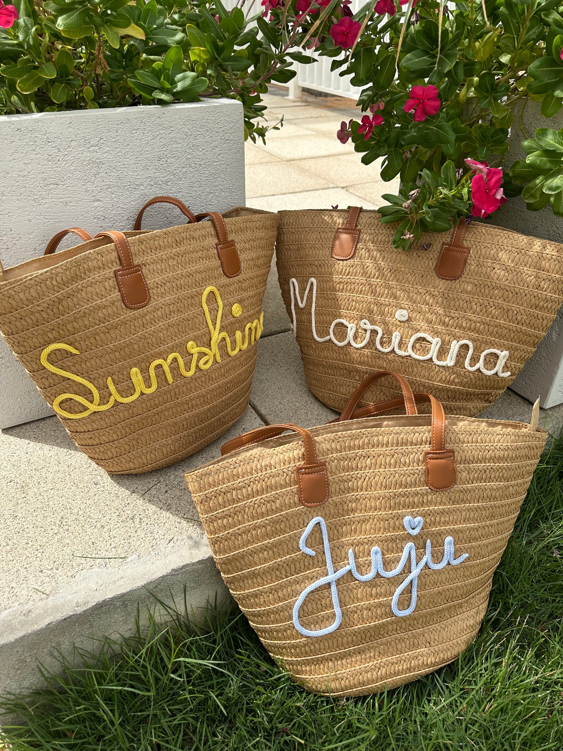 The Tag Me Tote is a straw bag that’s practical, adorable, and fully personalized with your name, initials or any word you like.
